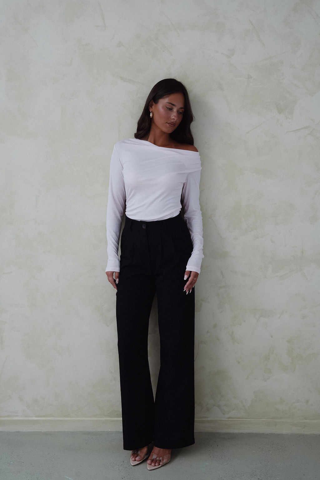 Our Lana drape top is your everyday essential with a luxurious twist. Crafted in a silky, soft fabric that skims the body with ease, this long sleeve top brings effortless elegance to your wardrobe. The soft drape flatters every shape, making it the perfect piece for layering, lounging, or dressing up. Style it tucked into high-waisted trousers for the office or paired with your favourite piece of denim for relaxed sophistication.